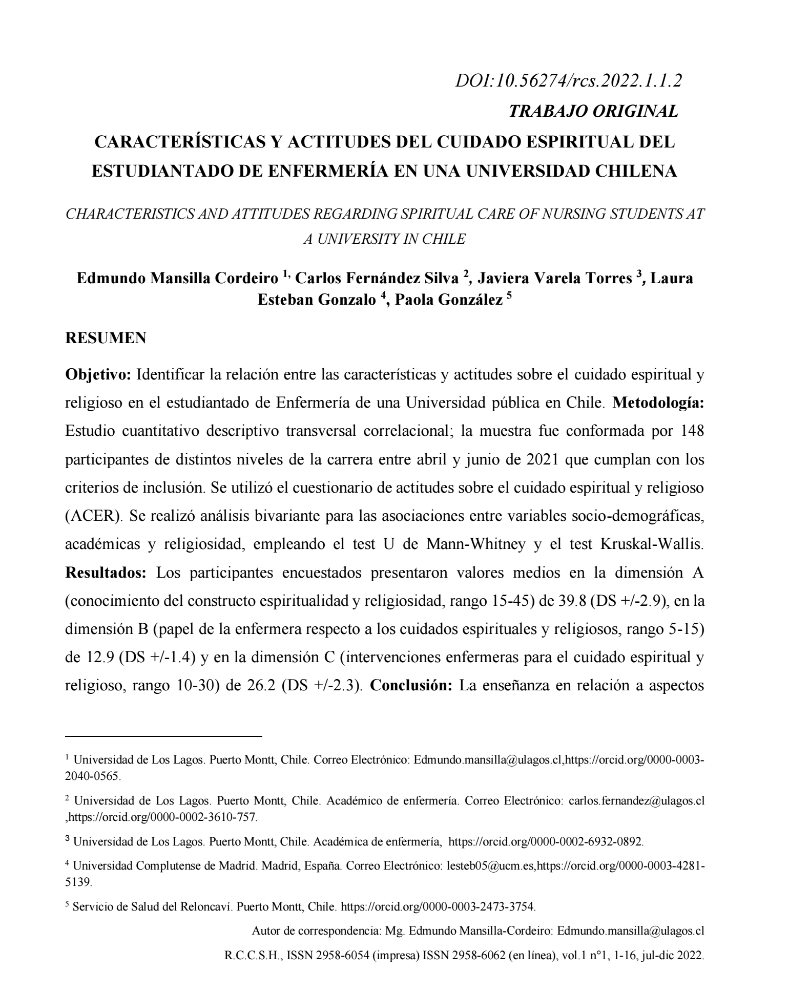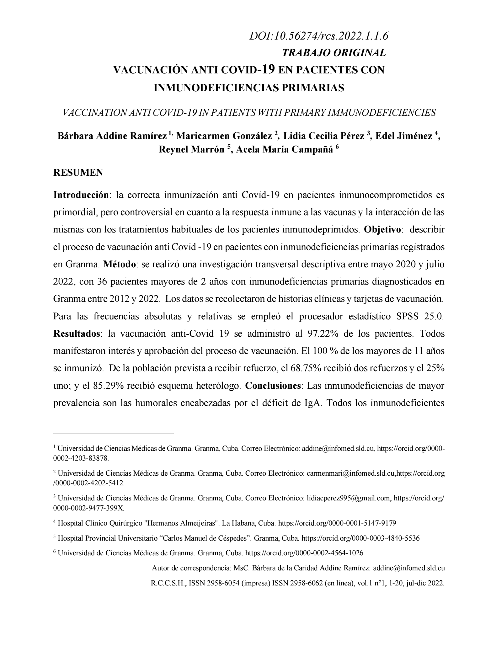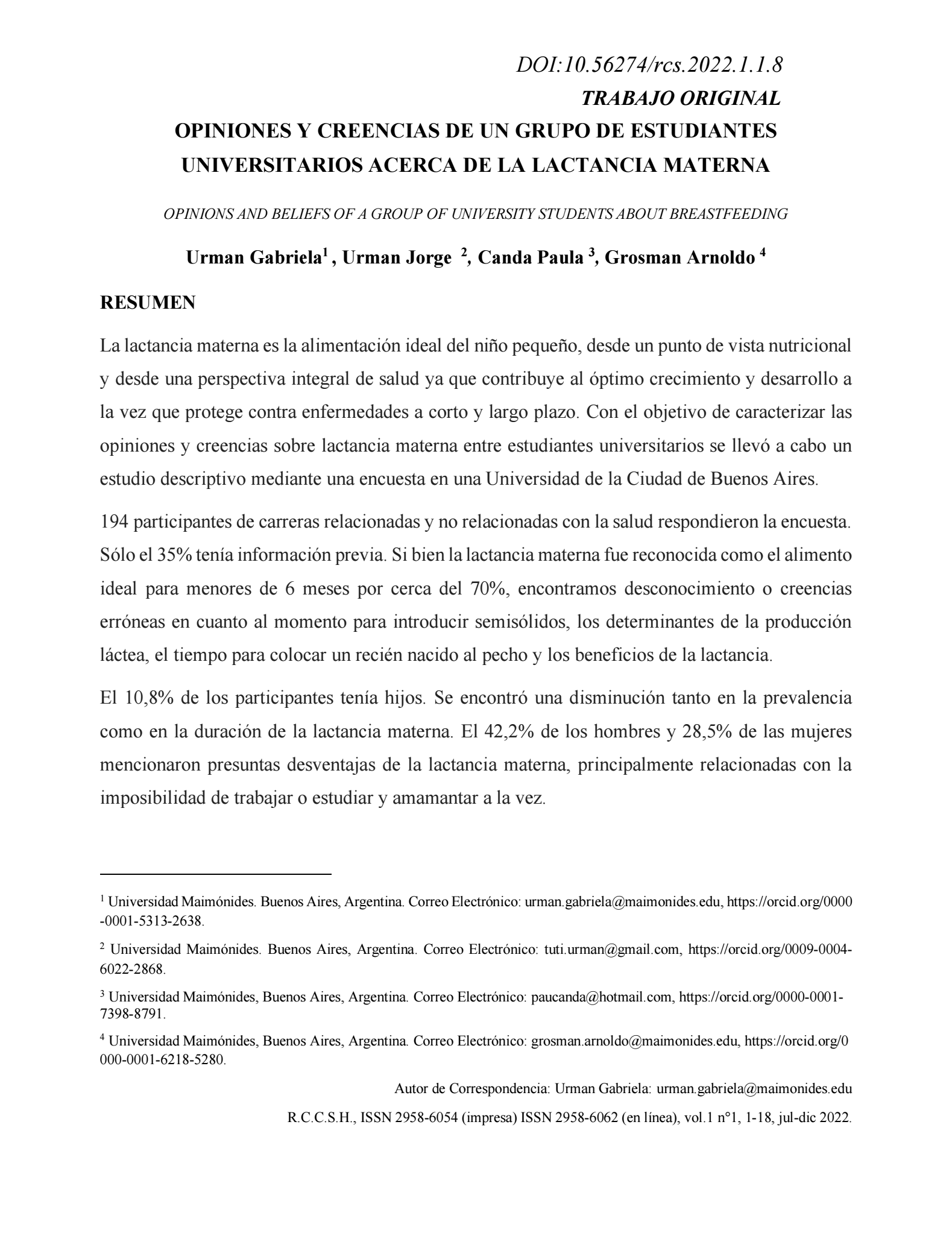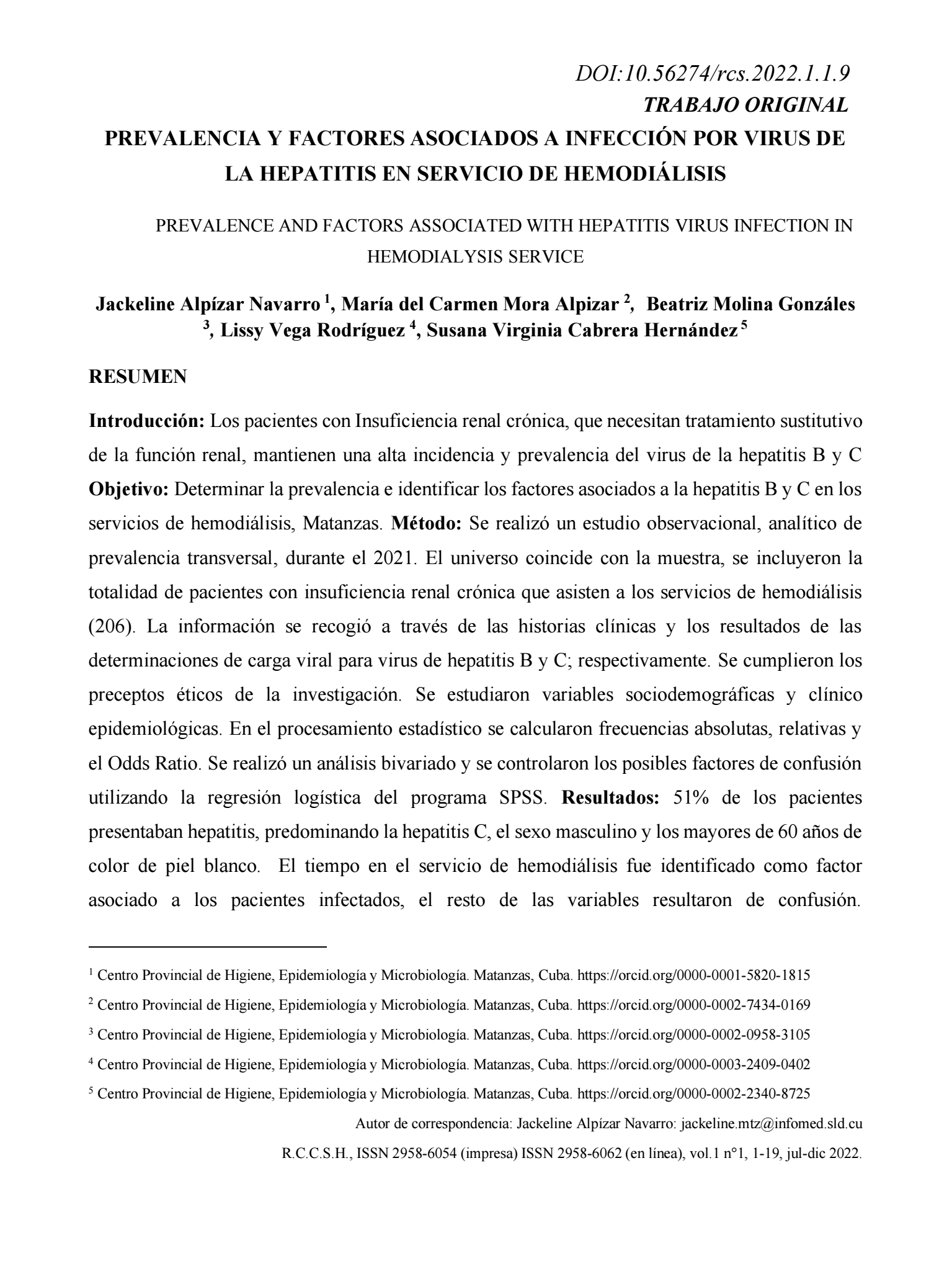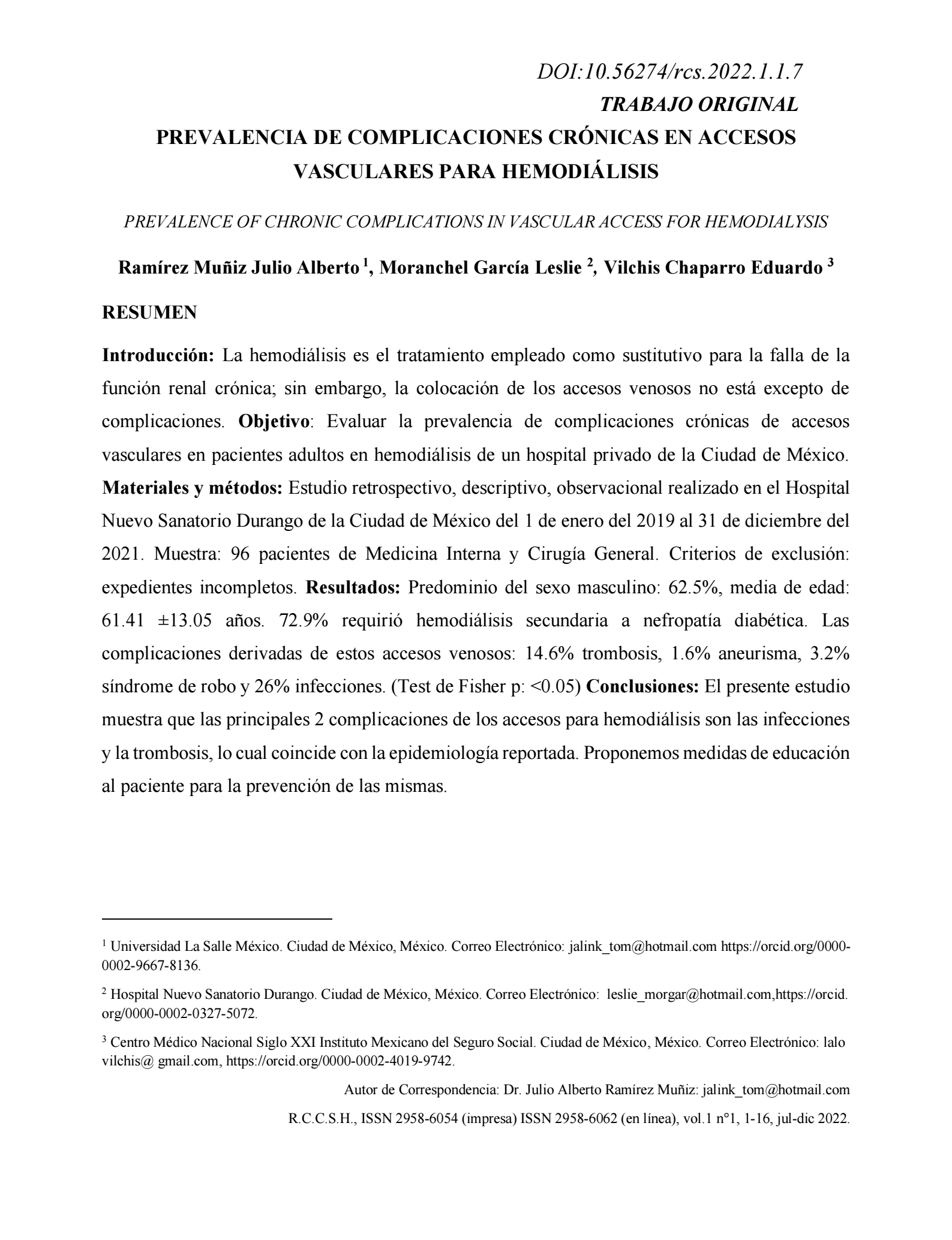 The Journal of Human Health Sciences (RCCSH) is a national and international publication