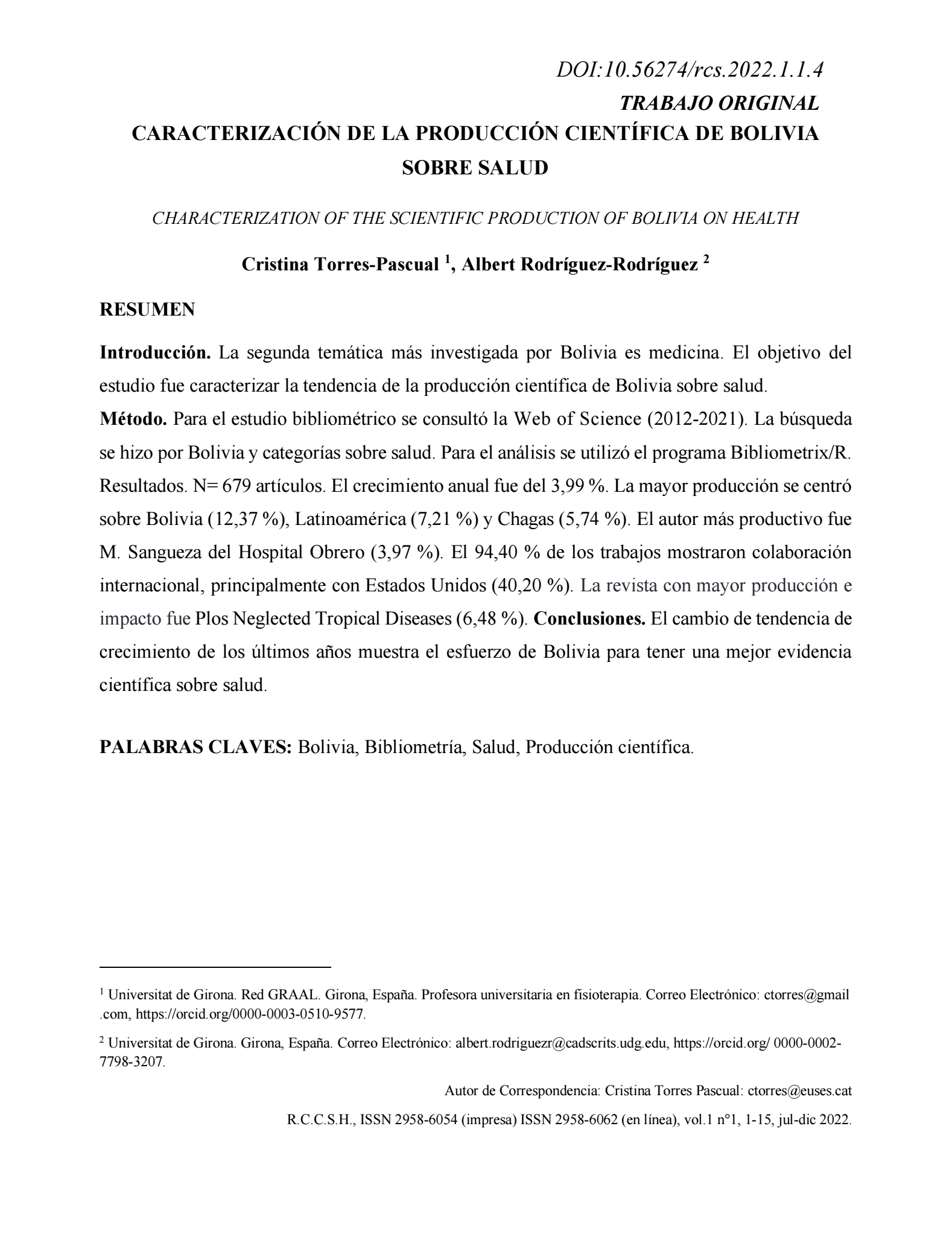 (Bolivia). The RCCSH invites the academic community to submit their research